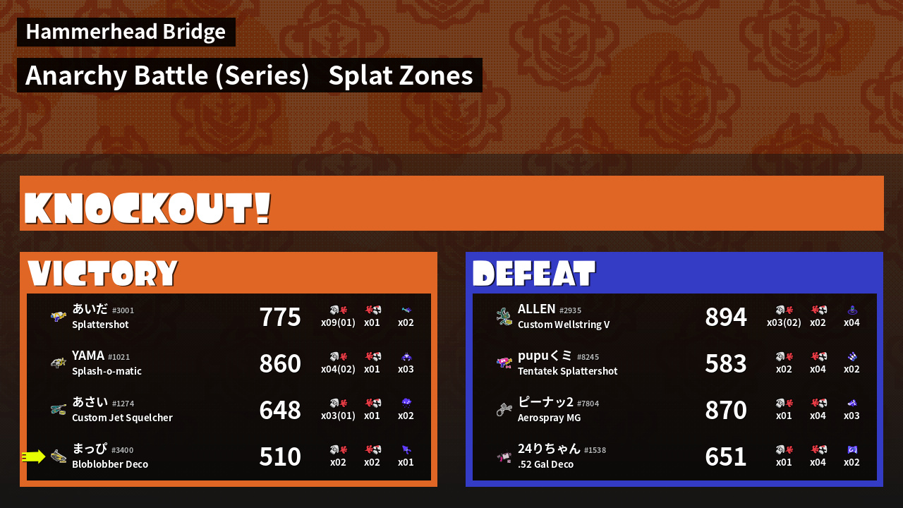 | Mode | Splat Zones - Anarchy Battle (Series) |