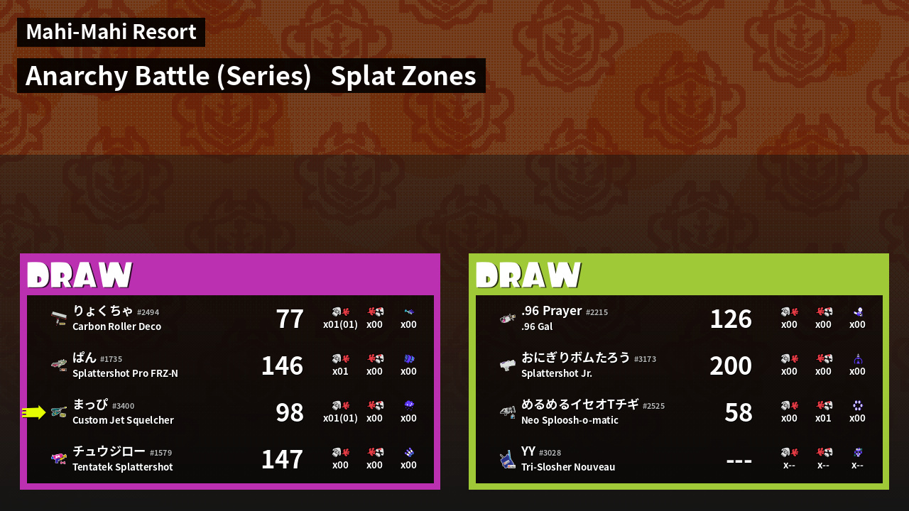 | Mode | Splat Zones - Anarchy Battle (Series) |