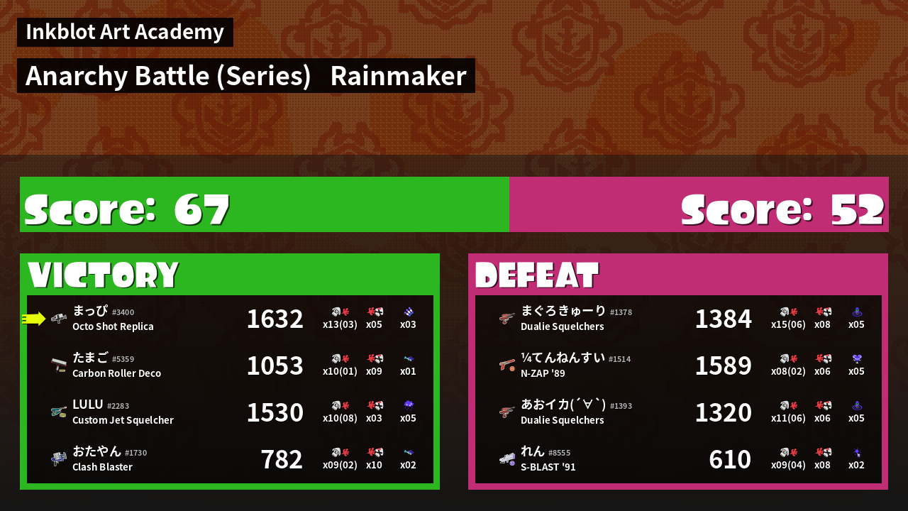 | Mode | Rainmaker - Anarchy Battle (Series) |