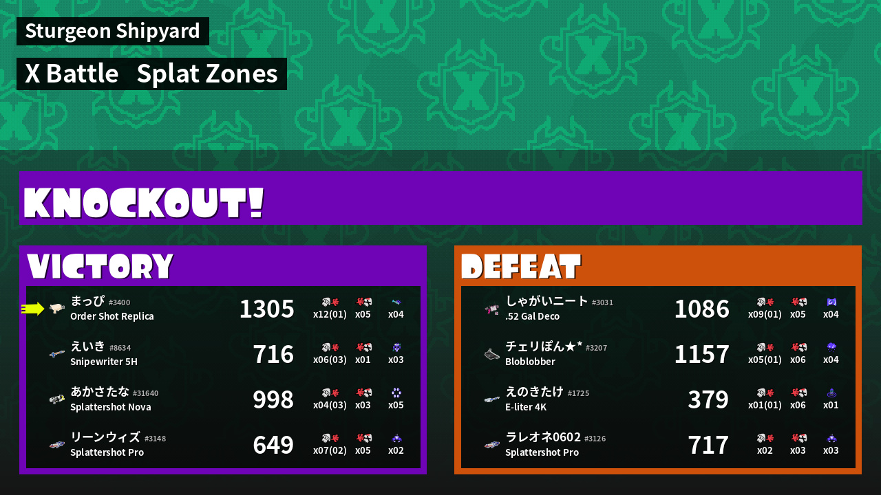 | Mode | Splat Zones - X Battle |