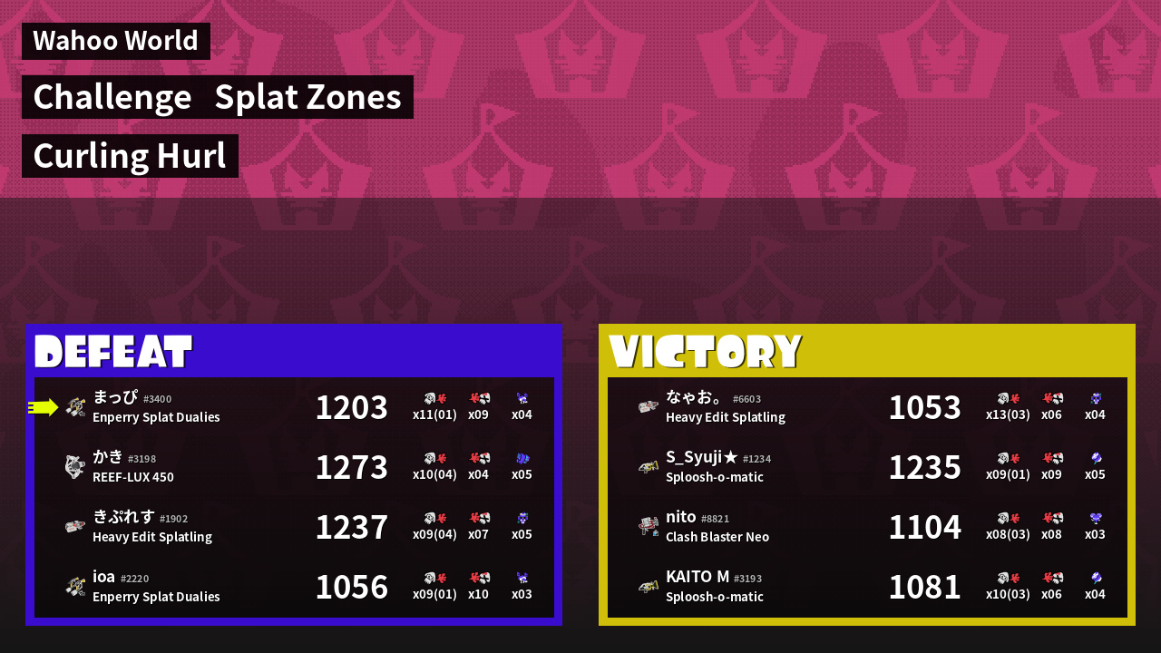 | Weapon | Enperry Splat Dualies ( Curling Bomb / Triple Splashdown) |