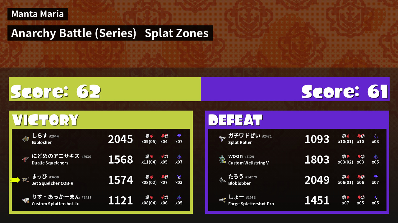 | Mode | Splat Zones - Anarchy Battle (Series) |