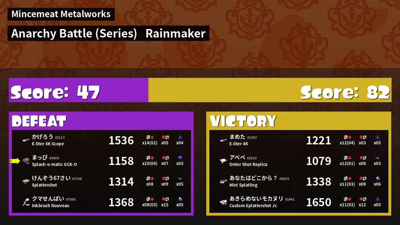 | Mode | Rainmaker - Anarchy Battle (Series) |