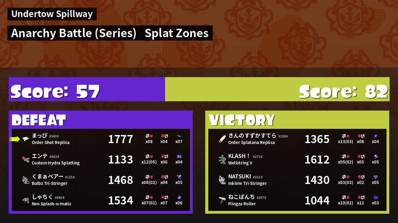 | Mode | Splat Zones - Anarchy Battle (Series) |