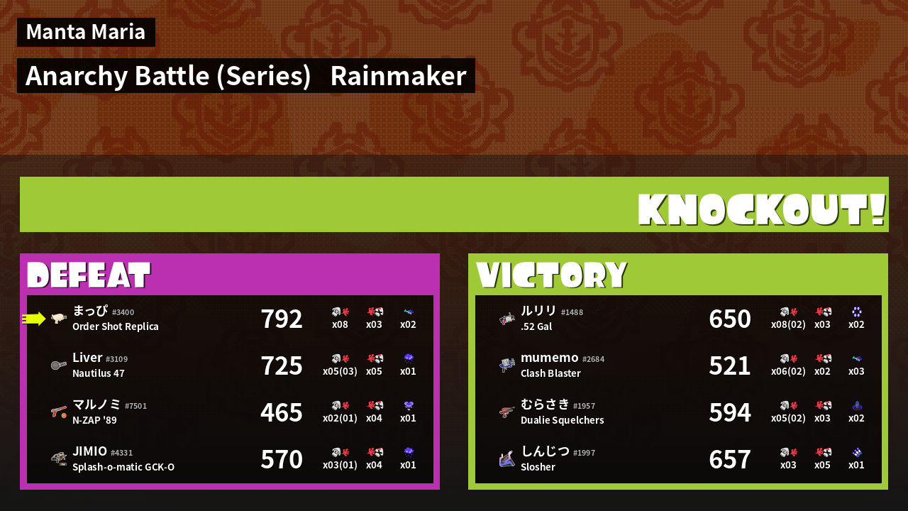 | Mode | Rainmaker - Anarchy Battle (Series) |