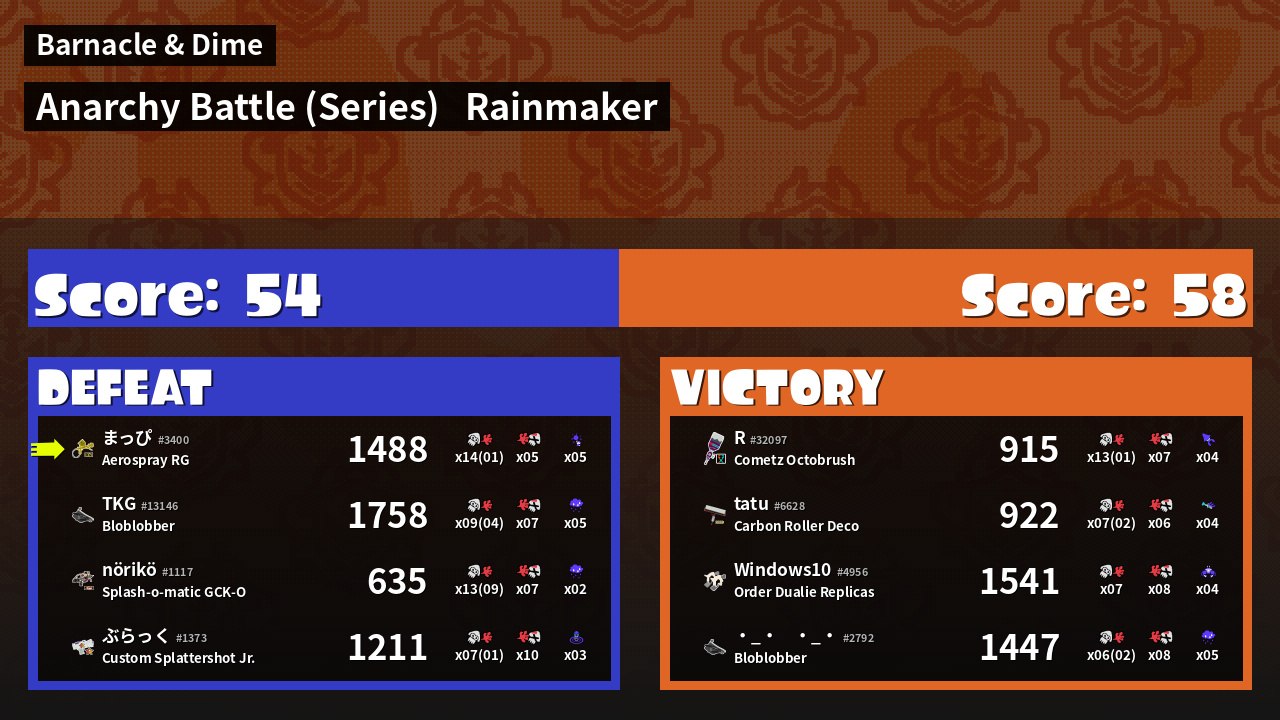 | Mode | Rainmaker - Anarchy Battle (Series) |