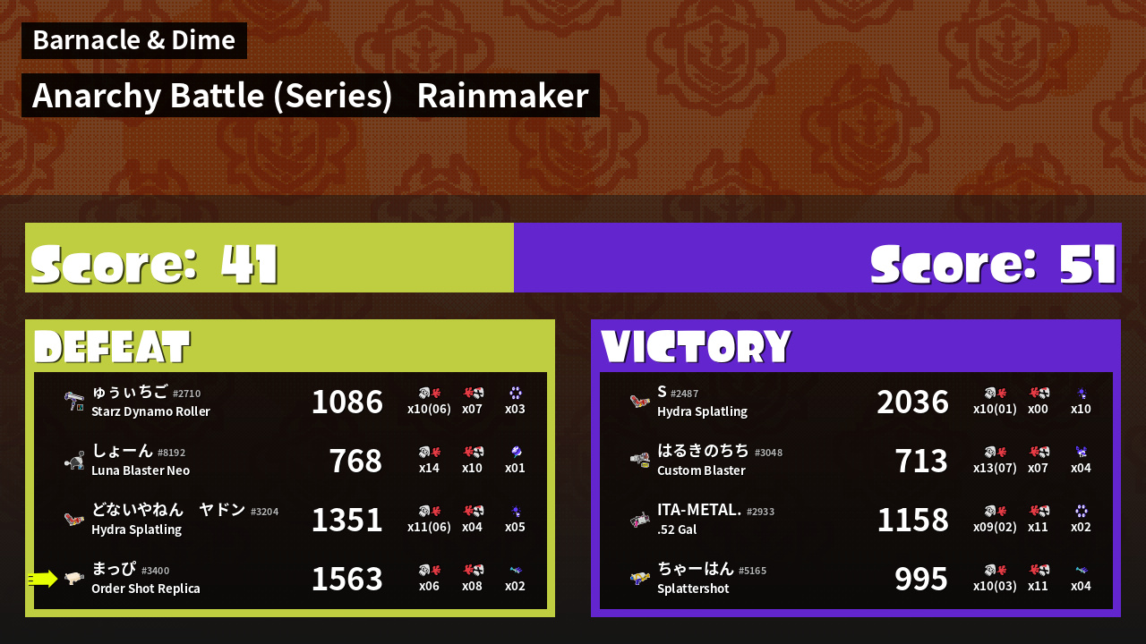 | Mode | Rainmaker - Anarchy Battle (Series) |