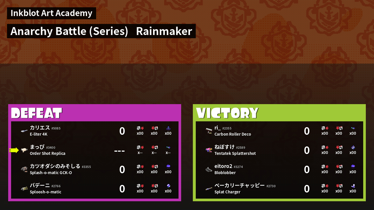 | Mode | Rainmaker - Anarchy Battle (Series) |