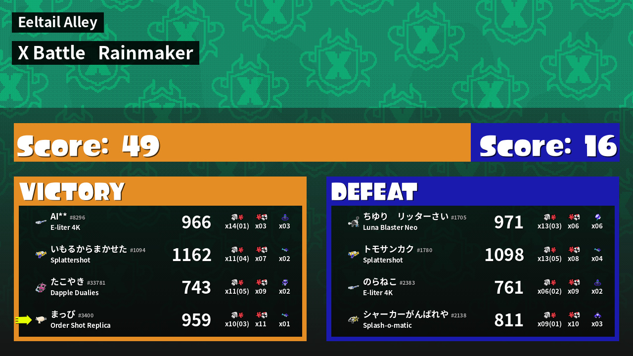 | Mode | Rainmaker - X Battle |