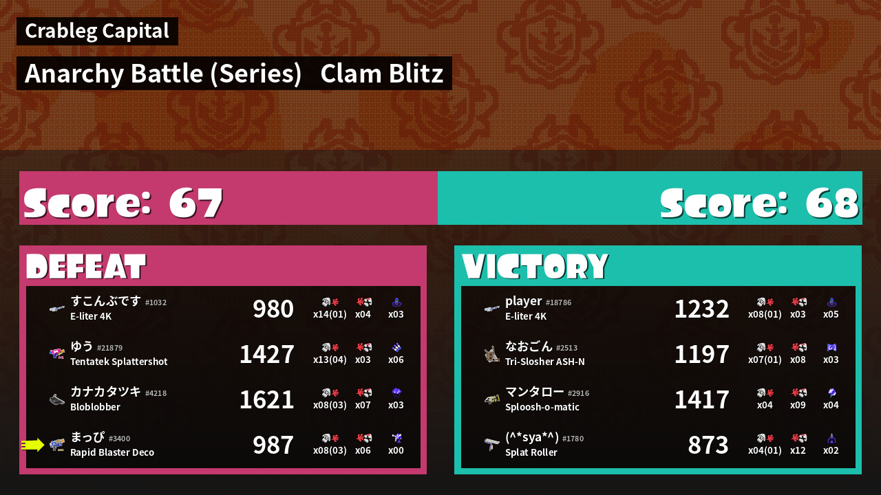 | Mode | Clam Blitz - Anarchy Battle (Series) |