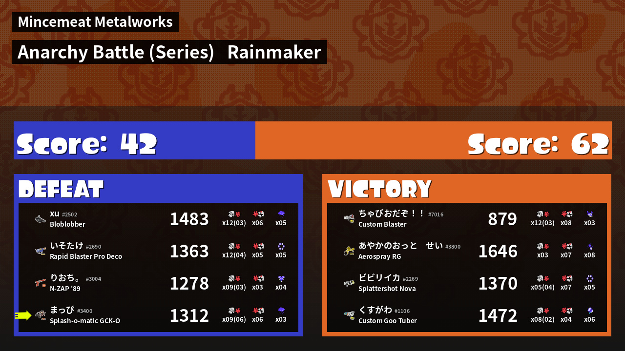 | Mode | Rainmaker - Anarchy Battle (Series) |