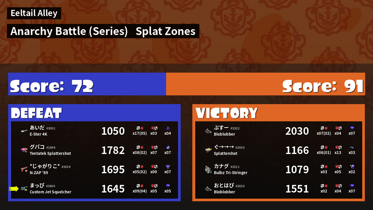 | Mode | Splat Zones - Anarchy Battle (Series) |