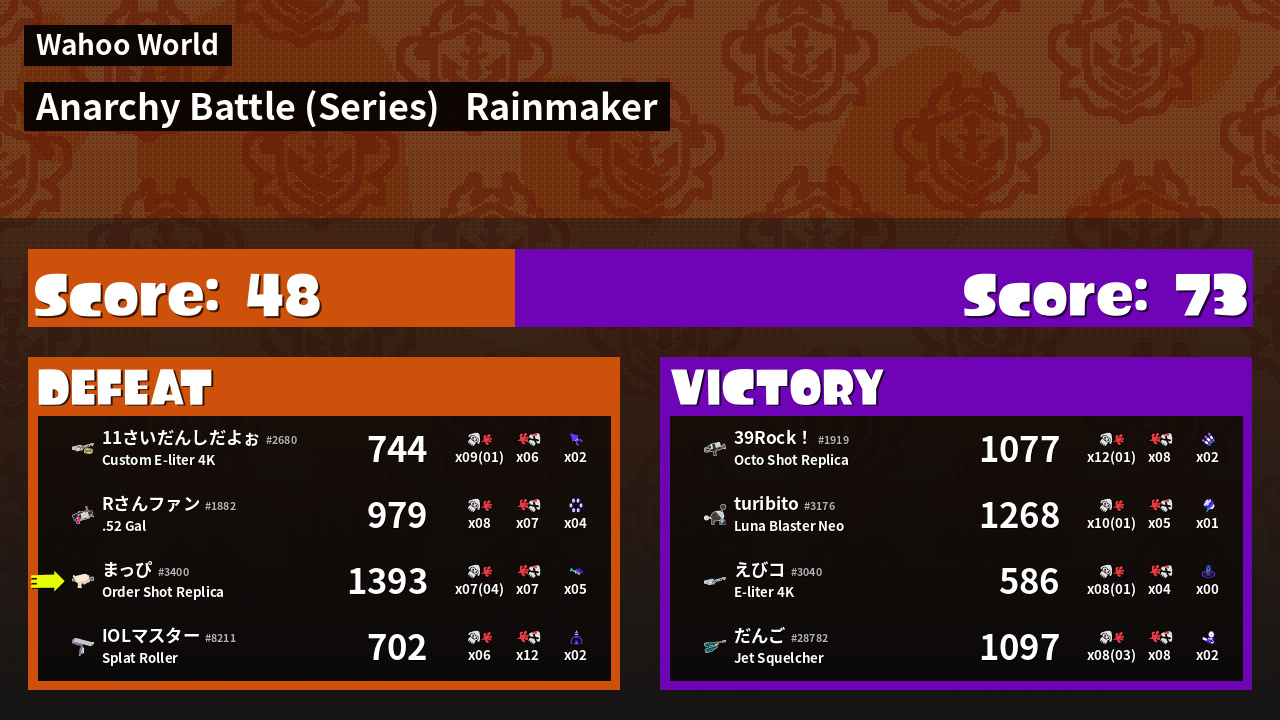 | Mode | Rainmaker - Anarchy Battle (Series) |