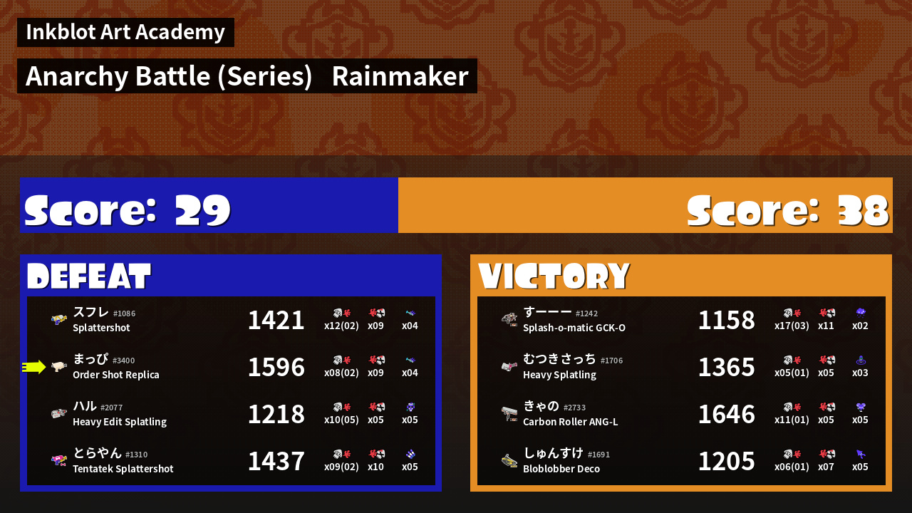 | Mode | Rainmaker - Anarchy Battle (Series) |