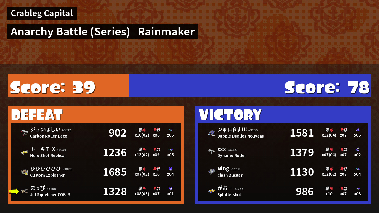 | Mode | Rainmaker - Anarchy Battle (Series) |