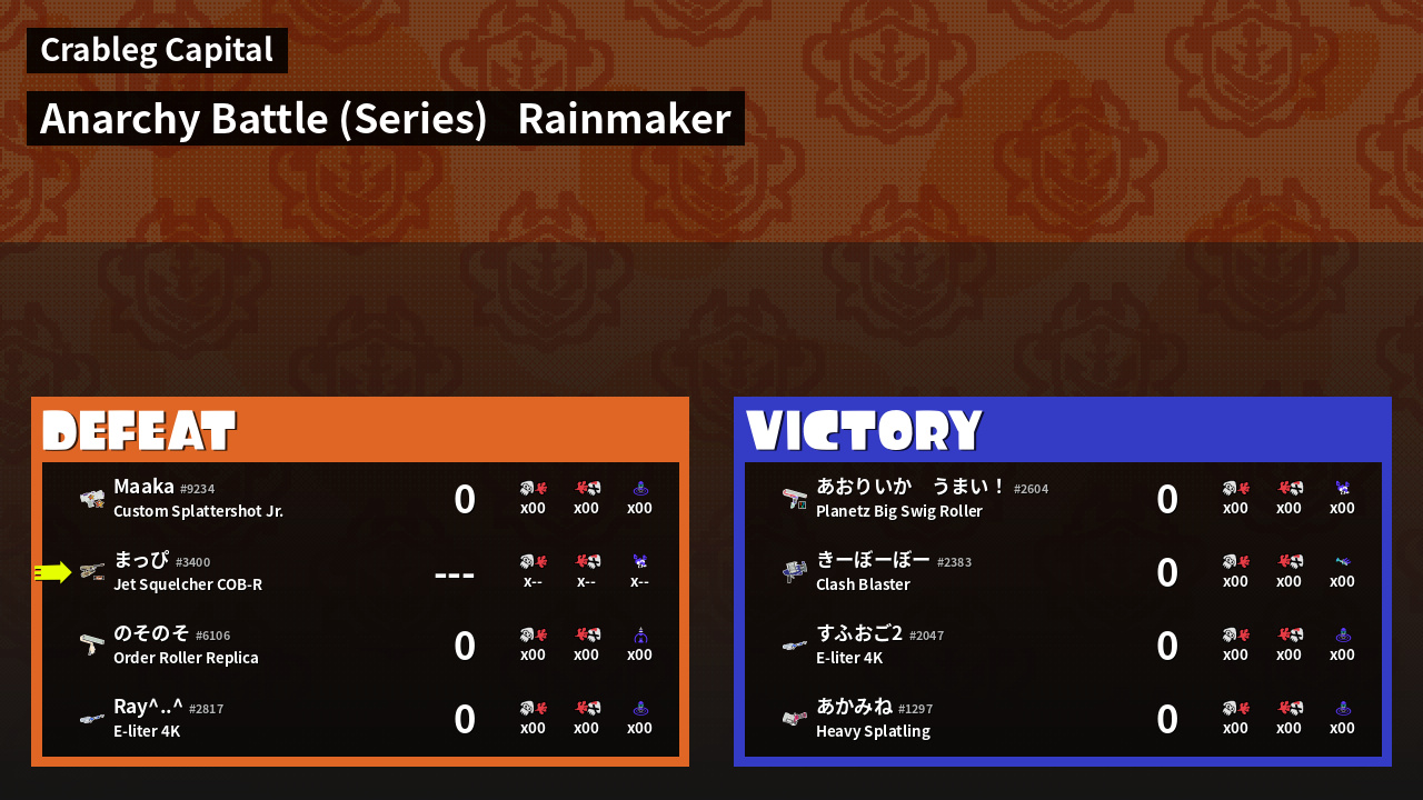 | Mode | Rainmaker - Anarchy Battle (Series) |