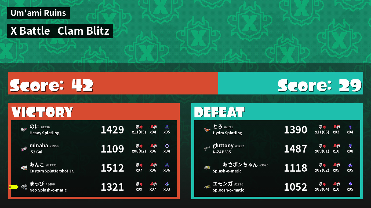 | Medals | #1 Enemy Splatter #1 Clam Stopper #1 Ink Consumer |