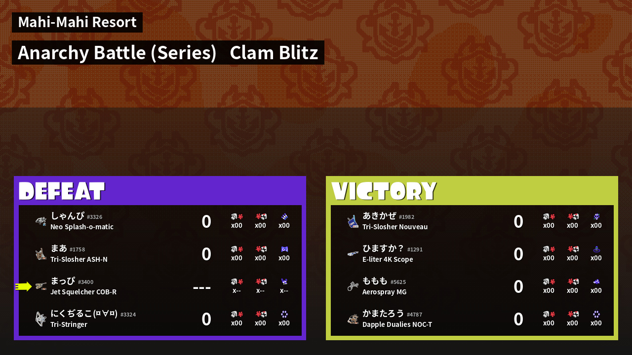 | Mode | Clam Blitz - Anarchy Battle (Series) |