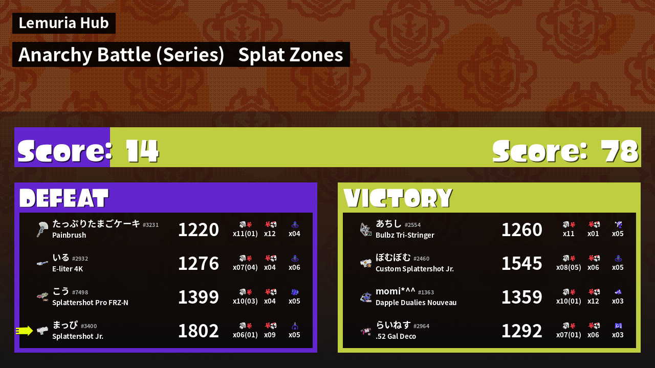 | Mode | Splat Zones - Anarchy Battle (Series) |