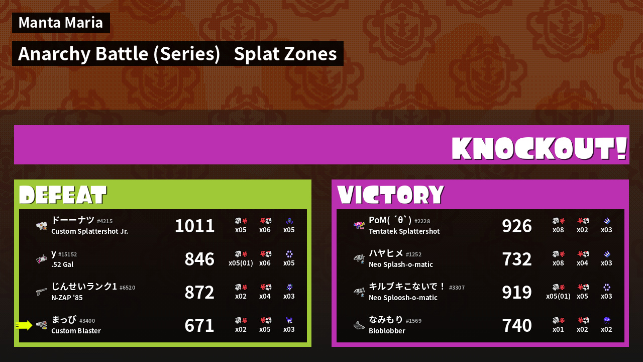 | Mode | Splat Zones - Anarchy Battle (Series) |