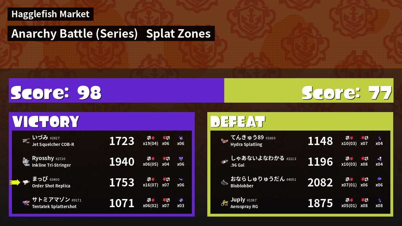 Results of まっぴ's Battle