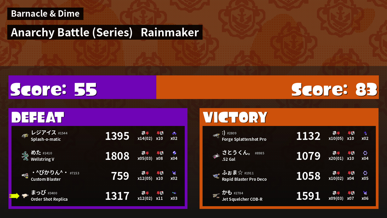 | Mode | Rainmaker - Anarchy Battle (Series) |