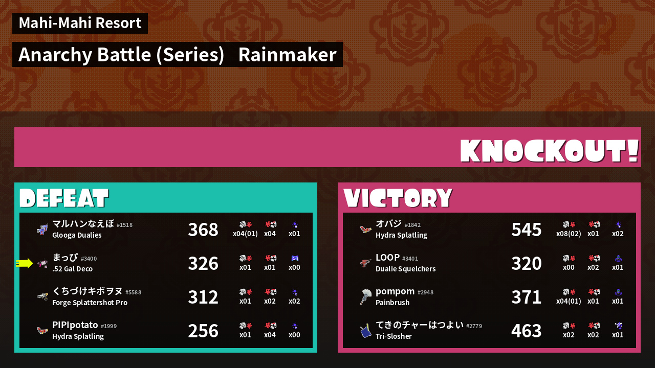 | Medals | #1 Ink Consumer #2 Overall Splatter #2 Turf Inker |