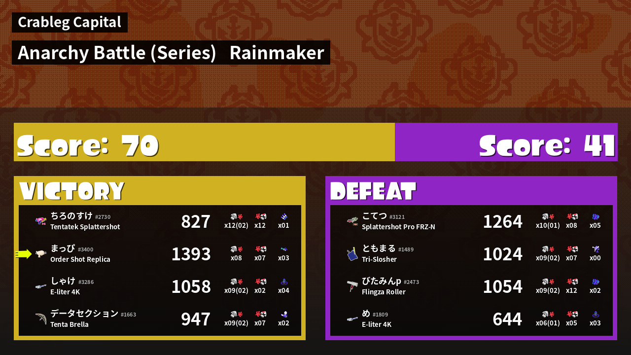 | Mode | Rainmaker - Anarchy Battle (Series) |
