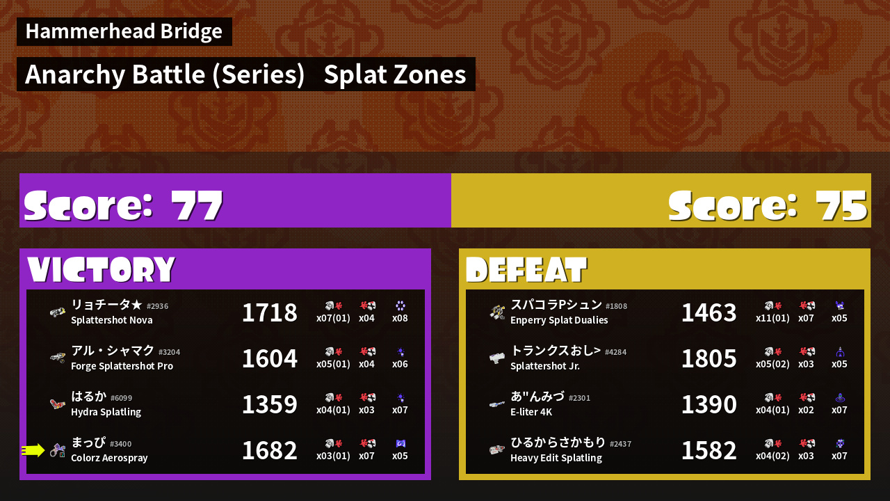 | Mode | Splat Zones - Anarchy Battle (Series) |