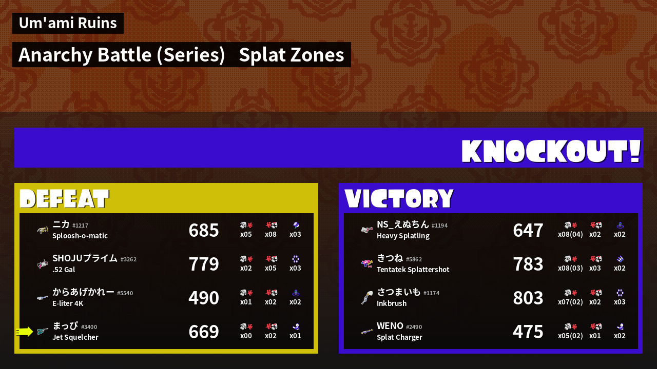 | Mode | Splat Zones - Anarchy Battle (Series) |