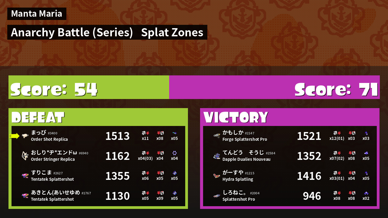 | Mode | Splat Zones - Anarchy Battle (Series) |