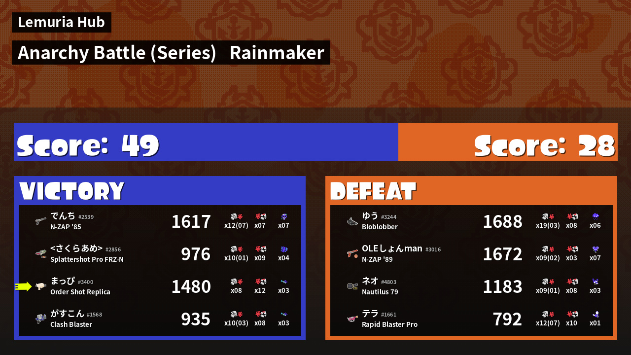 | Mode | Rainmaker - Anarchy Battle (Series) |
