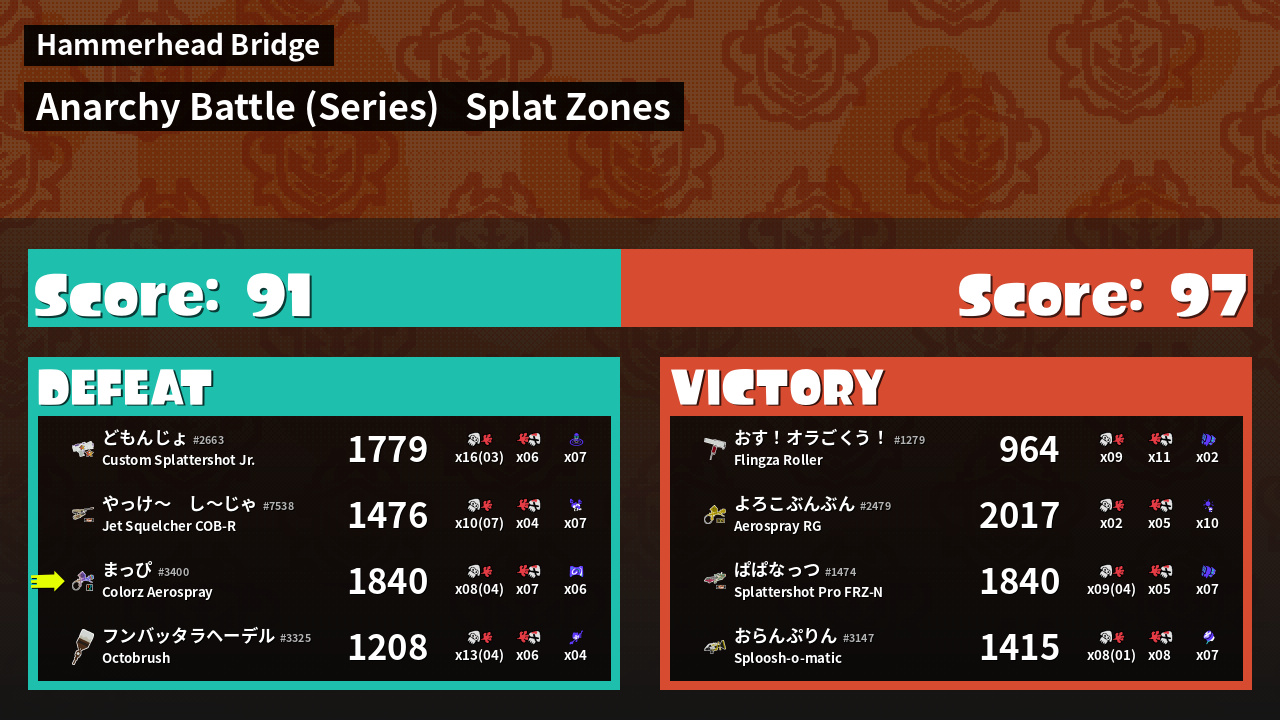 | Mode | Splat Zones - Anarchy Battle (Series) |