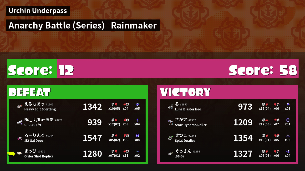 | Mode | Rainmaker - Anarchy Battle (Series) |