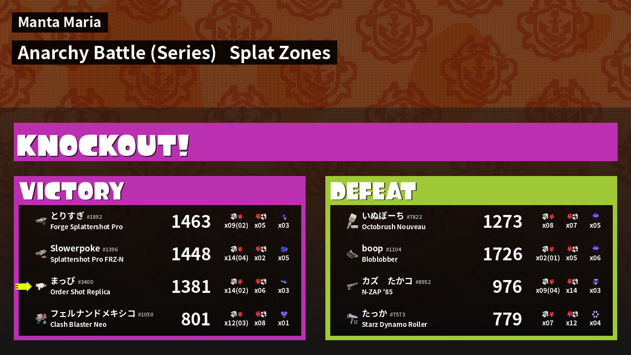| Mode | Splat Zones - Anarchy Battle (Series) |