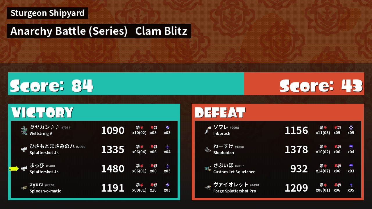 | Mode | Clam Blitz - Anarchy Battle (Series) |