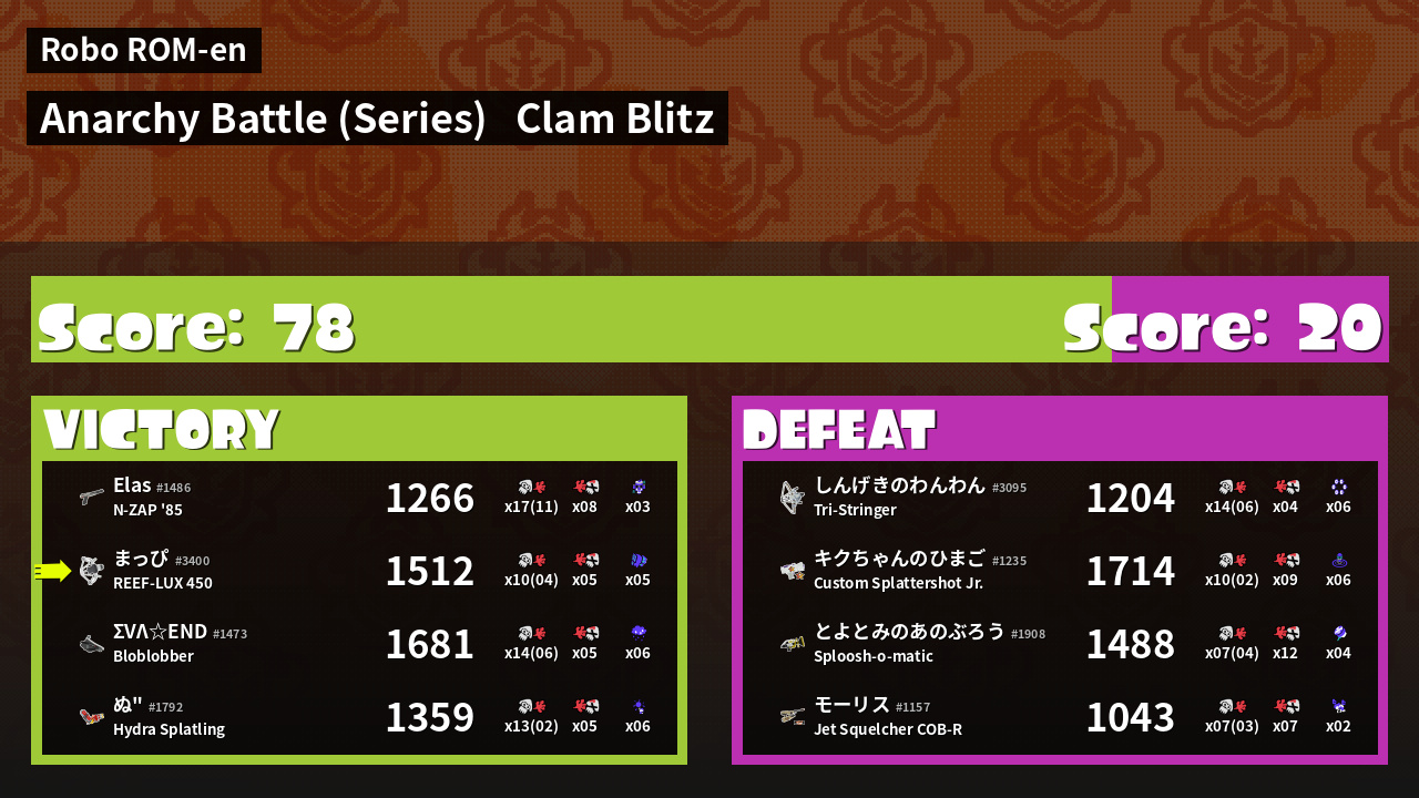 | Mode | Clam Blitz - Anarchy Battle (Series) |