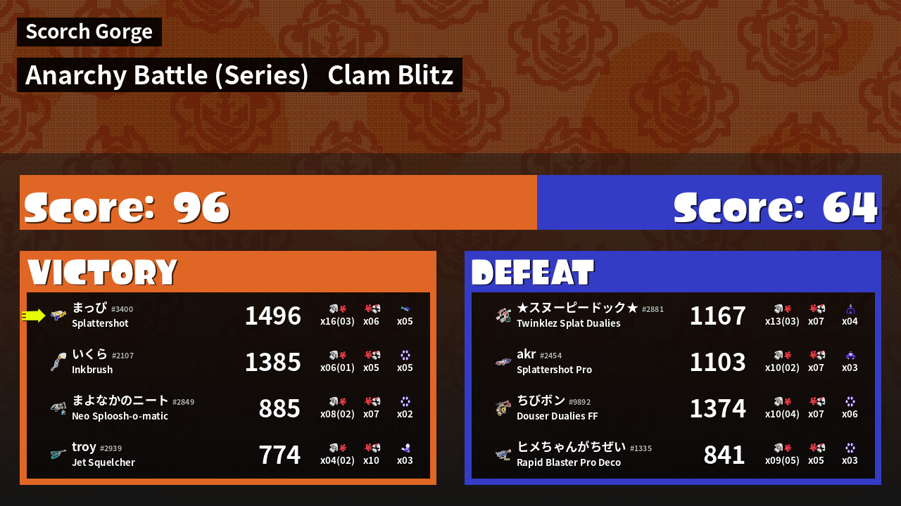 | Mode | Clam Blitz - Anarchy Battle (Series) |