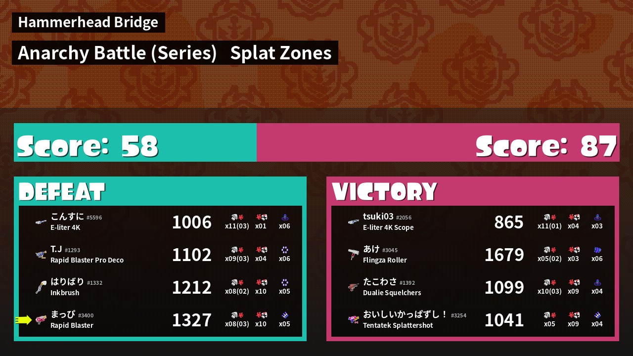 | Mode | Splat Zones - Anarchy Battle (Series) |