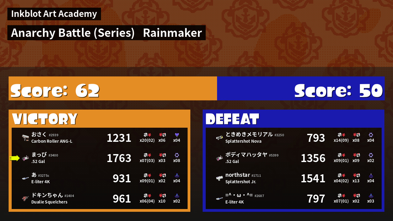 | Mode | Rainmaker - Anarchy Battle (Series) |