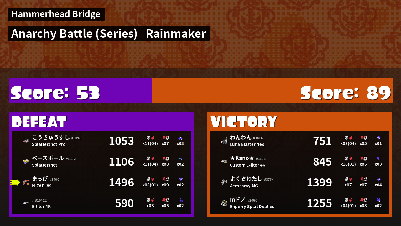 | Mode | Rainmaker - Anarchy Battle (Series) |