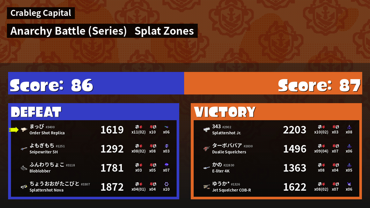 | Mode | Splat Zones - Anarchy Battle (Series) |