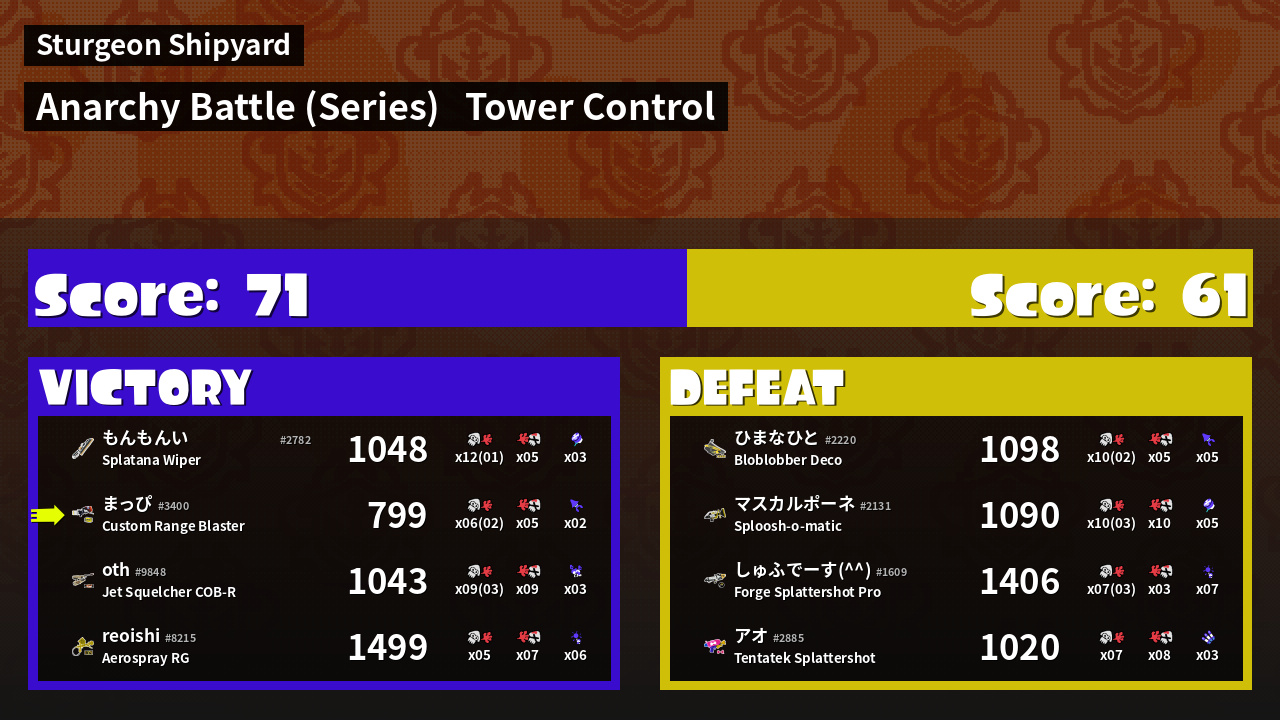 | Mode | Tower Control - Anarchy Battle (Series) |