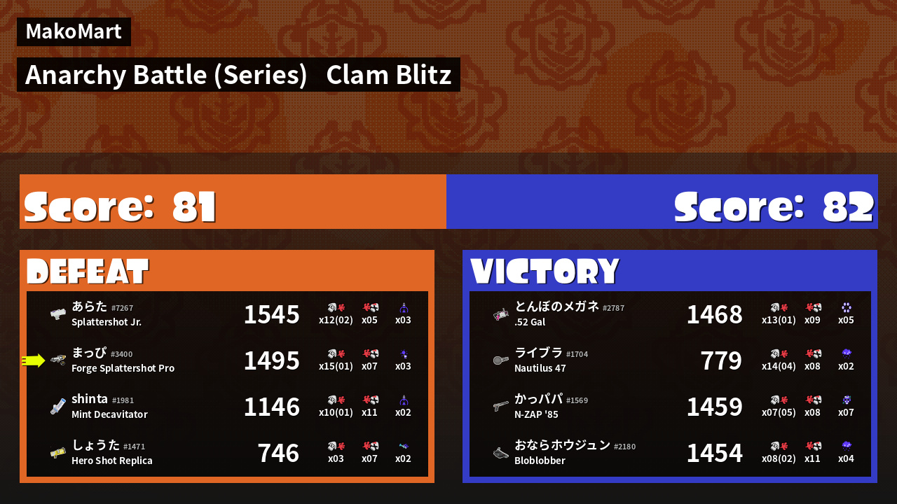 | Mode | Clam Blitz - Anarchy Battle (Series) |