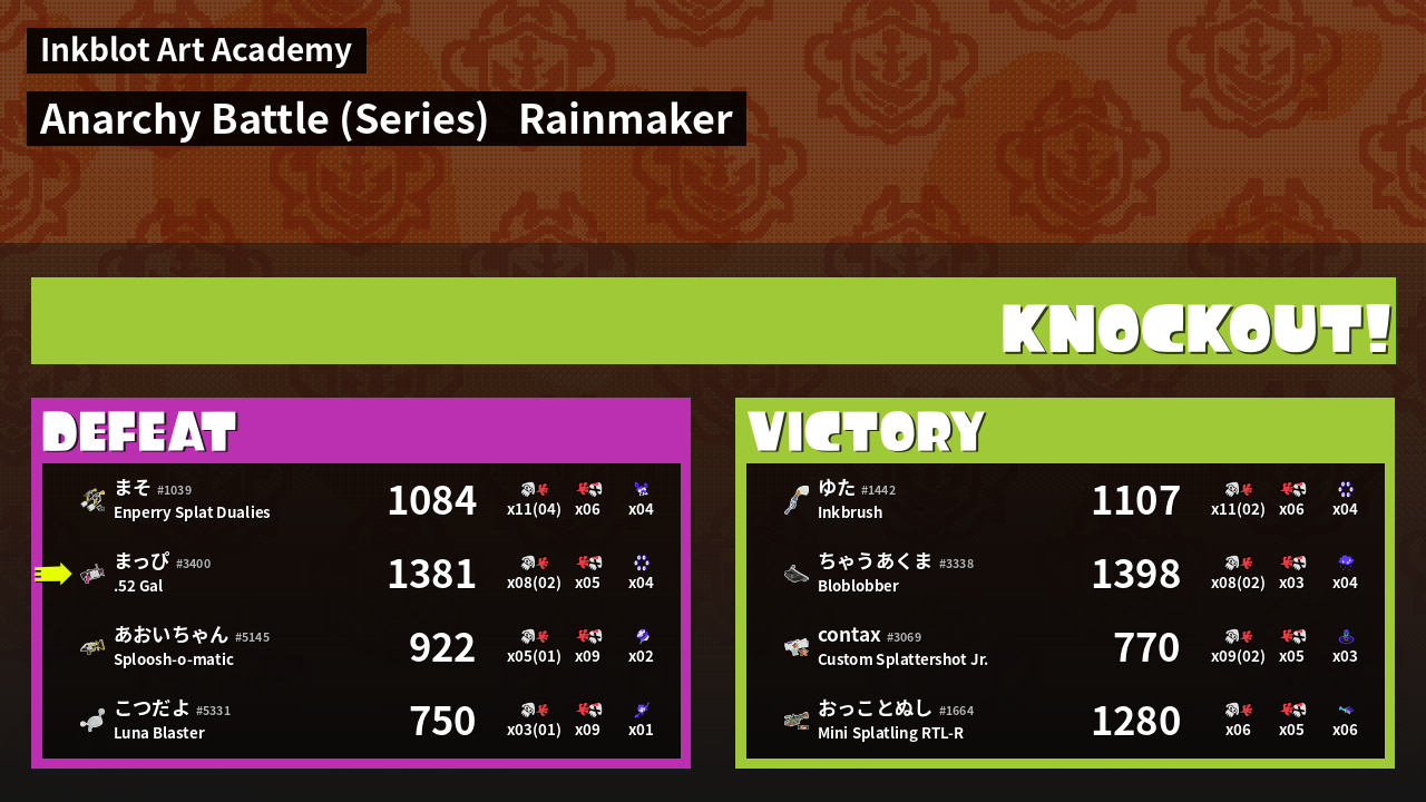 Results of まっぴ's Battle