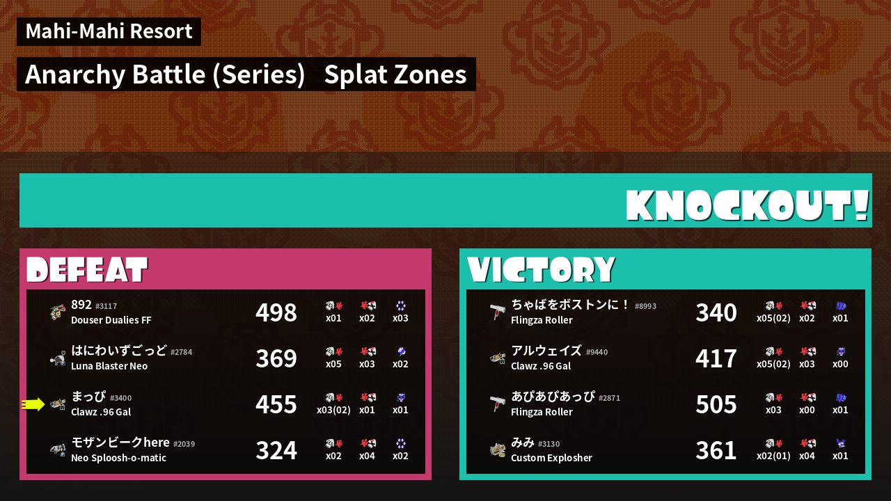 | Mode | Splat Zones - Anarchy Battle (Series) |