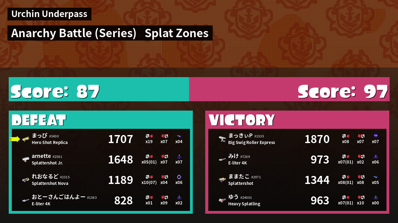 | Mode | Splat Zones - Anarchy Battle (Series) |