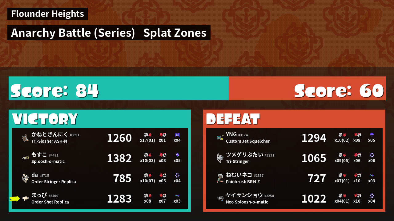 | Mode | Splat Zones - Anarchy Battle (Series) |