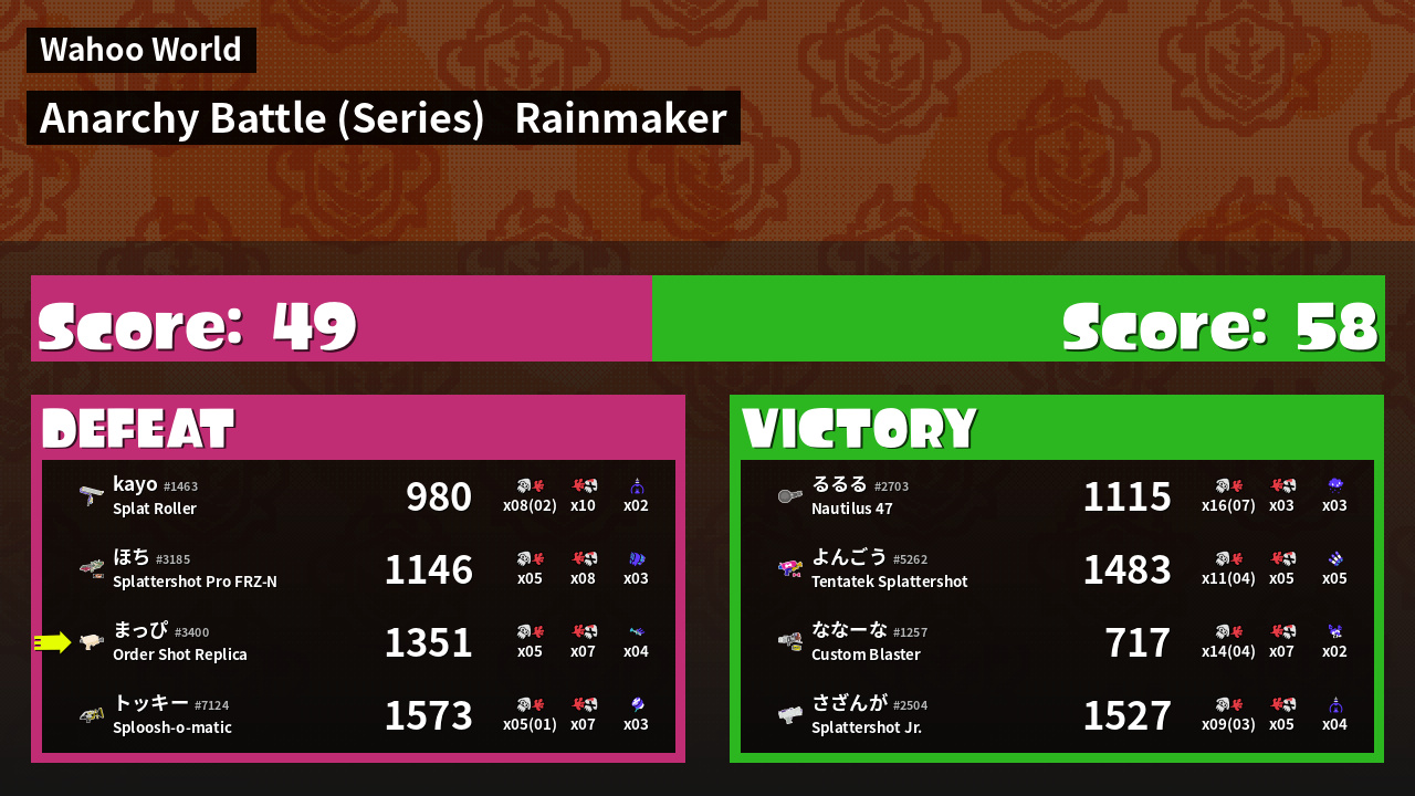 Results of まっぴ's Battle