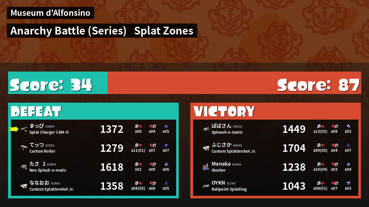 | Mode | Splat Zones - Anarchy Battle (Series) |
